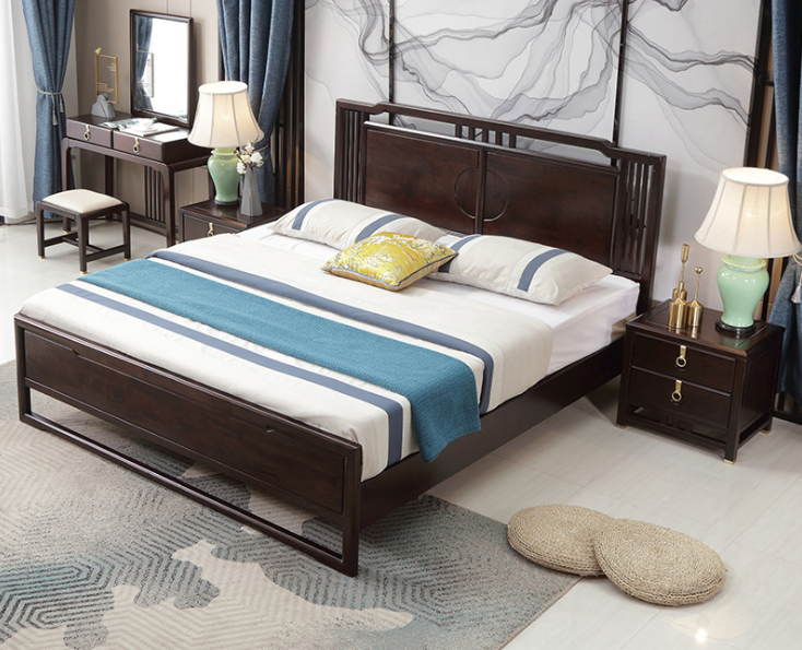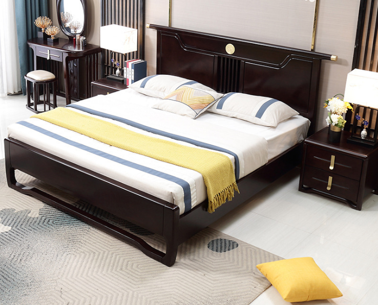 新中式實(shí)木床禪意酒店1.5 1.8米大床臥室橡木家具組合