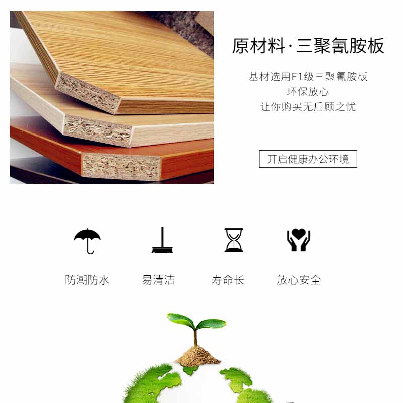 【板材】:基材采用印尼E1級(jí)高密度板,密度達(dá)700KG/M3以上,甲醛含量≤1.5mg/L,經(jīng)防潮、防蟲、防腐處理,強(qiáng)度高、剛性好、不變形,各種物理、化學(xué)性能指標(biāo)均達(dá)到國(guó)際相關(guān)標(biāo)準(zhǔn)。